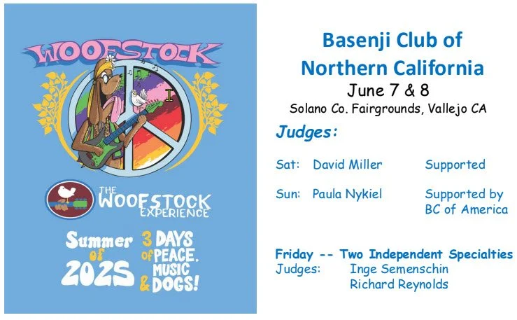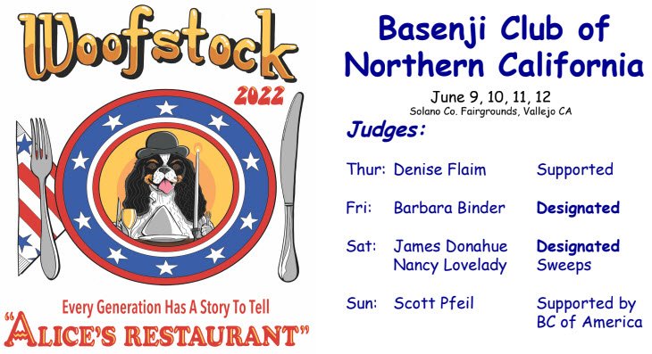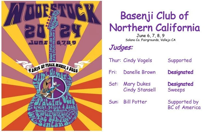 Get ready to get groovy. Join BCONC and other dog clubs for 38 independent specialties and 82 designated and supported events from June 4th - June 8th at the Yolo County Fairgrounds in Woodland CA.